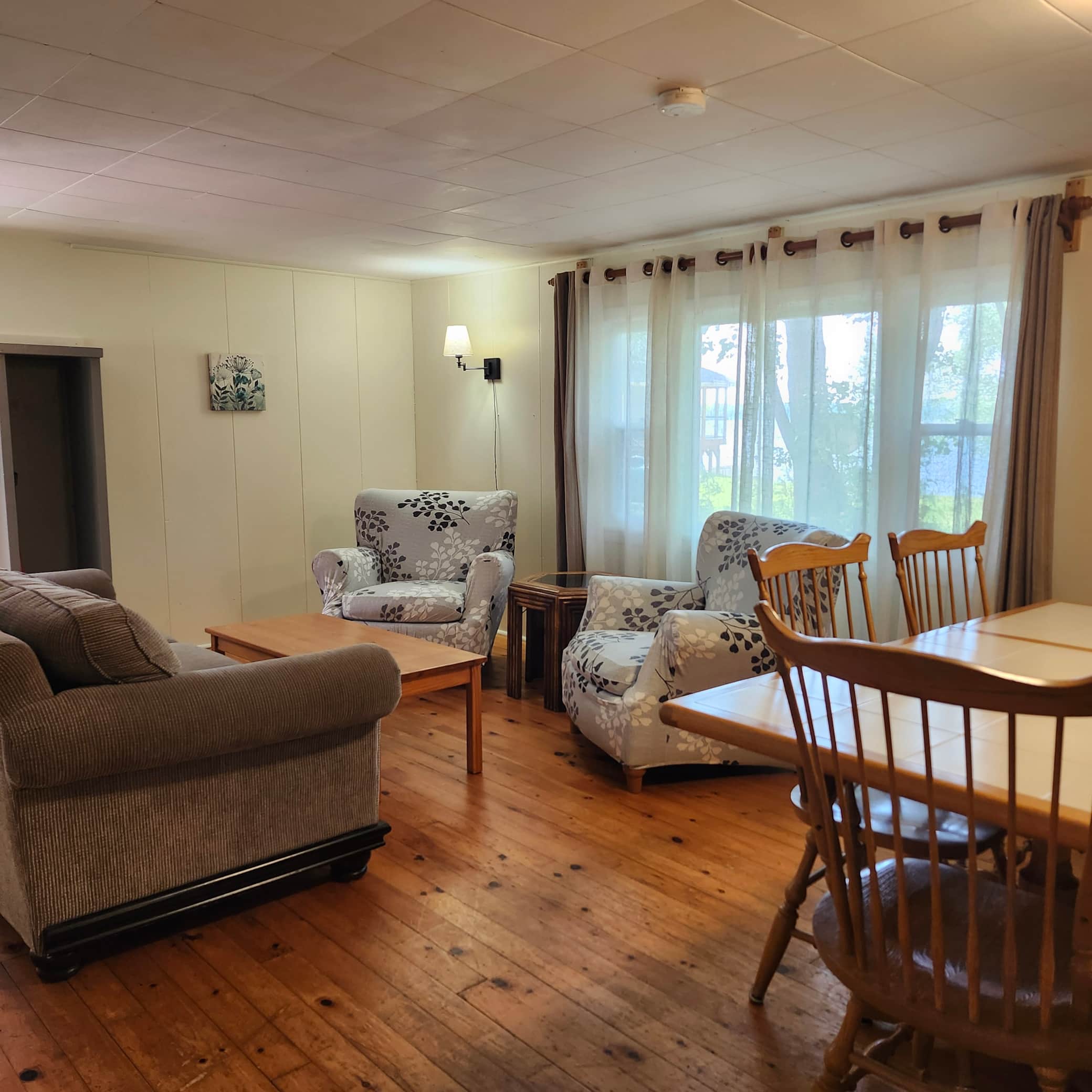 Available to rent from Victoria Day weekend to Thanksgiving weekend. This 3-bedroom cottage with lake views is best suited for families, conveniently located beside our private playground, and offers 2 double beds and a single over a double bunk bed, all with pillows.  Fitted bottom sheets and pillowcases are provided for each bed (Excluding Summer months). You will provide your own comforters/blankets/ sleeping bags & bath towels. This cottage offers a well-equipped kitchen, living room, BBQ with propane, picnic table, and private firepit with firewood included. We provide hand soap and hand towels in the washroom, dish soap, kitchen linens, salt & pepper, and coffee filters in the kitchen. There is no central heating in this cottage; an electric wall heater in the living room is in place for cooler nights. Our welcoming property is here for you to explore and enjoy. We can’t wait to meet you! Visit our website at www.shalombythelake.ca to learn more about our property and the surrounding area.